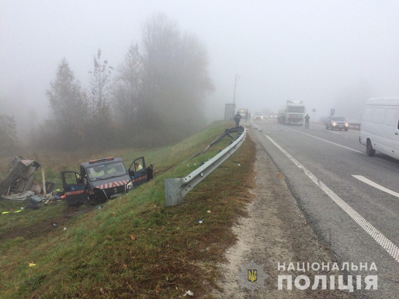 Утром 10 октября на автодороге Киев - Чоп возле села Лубяная Николаевского района произошло столкновение автопоезда "ДАФ" и микроавтобуса "ГАЗель". На месте происшествия работают правоохранители и медики. Один человек погиб, шестеро получили травмы. Об этом сообщает ГУНП Львовской области.