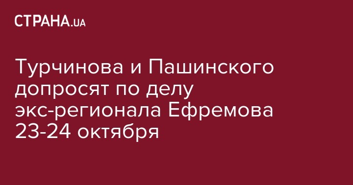 Турчинова и Пашинского допросят по делу экс-регионала Ефремова 23-24 октября