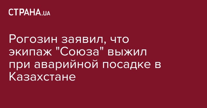 Рогозин заявил, что экипаж "Союза" выжил при аварийной посадке в Казахстане