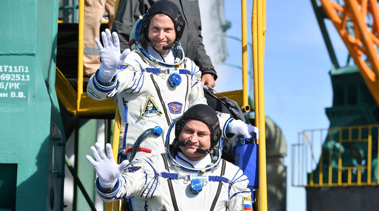 Экипаж корабля занял свои места в ложементах Фото: twitter.com/roscosmos