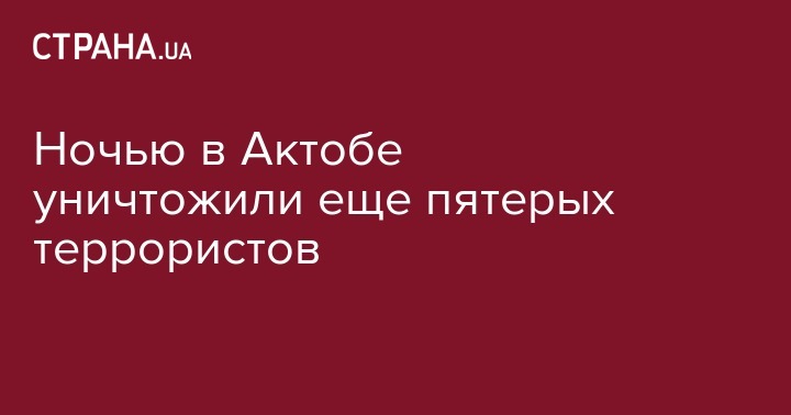 В ходе ночной АТО, в Актобе, были убиты еще 5 человек, подозреваемых в нападении на воинскую часть и оружейные магазины. Еще 2 подозреваемых задержаны. Об этом сообщает пресс-служба МВД, передает Интерфакс.