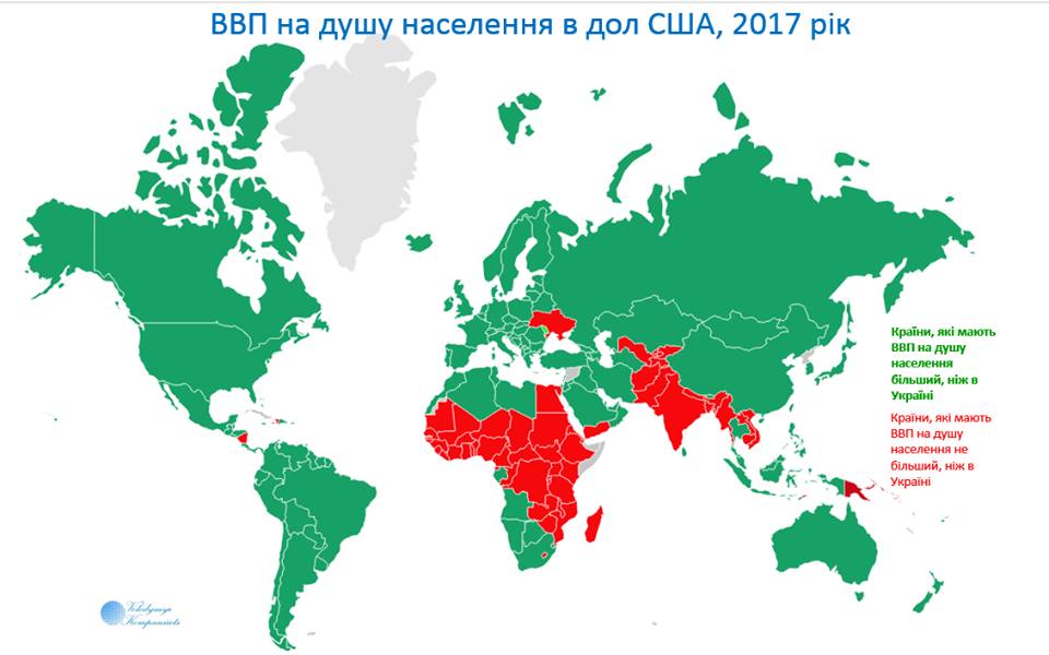 Об этом сообщил в Facebook экономист, управляющий частным инвестиционным фондом на рынке США Владимир Компаниец. Он опубликовал инфографику, которая показывает экономическую ситуацию в Украине в сравнении с другими странами мира.