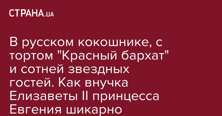 В русском кокошнике, с тортом "Красный бархат" и сотней звездных гостей. Как внучка Елизаветы II принцесса Евгения шикарно выходила замуж за бизнесмена Бруксбенка
