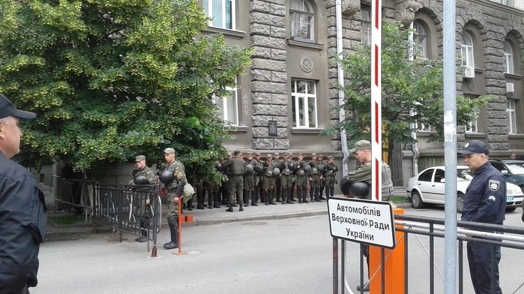 Как сообщает корреспондент "Страны", около 20 женщин с самодельными плакатами пришли на Банковую. На подходе к офису президента их встретило ровно такое число солдат Нацгвардии в полной экипировке.