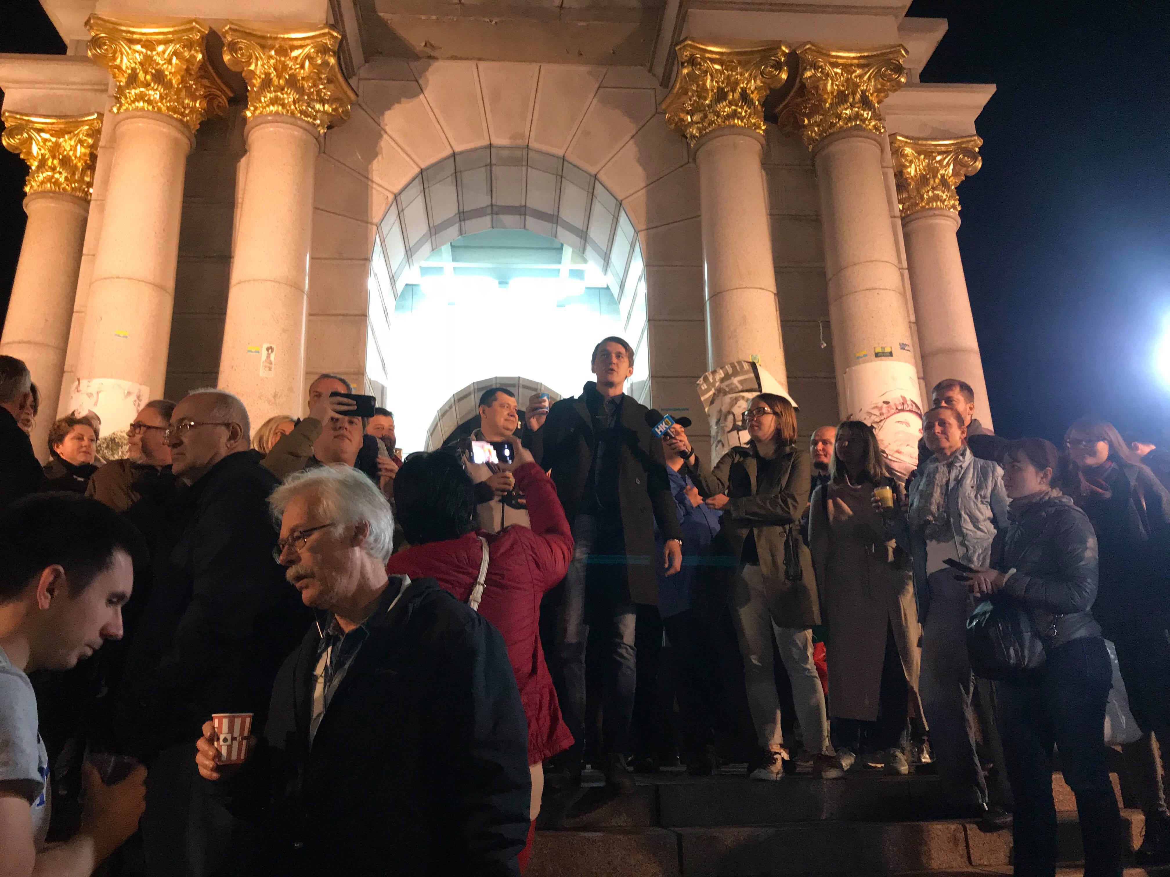 На Майдане собрались 150-170 человек. Они распивают спиртные напитки. Поднимают тосты за президента и украинскую власть: "Украина ждала этого 333 года. Для кого это мало, а для кого-то очень много. Мазепа не дождался, Грушевский не дождался, Петлюра не дождался. Даже Бандера с Шухевичем не дождались, а мы дождались. Мы это сделали. Это сделала наша церковь, это сделал наш президент".