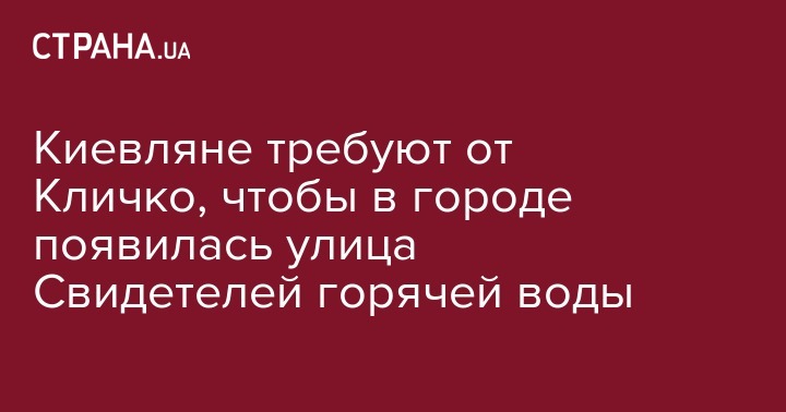 Киевляне хотят, чтобы в столице появилась улица Свидетелей горячей воды. Петиция с соответствующей просьбой зарегистрирована на сайте КГГА.