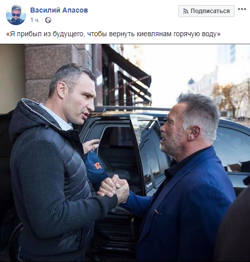 "Я прибыл из будущего, чтобы вернуть киевлянам горячую воду", - прокомментировал журналист Василий Апасов.