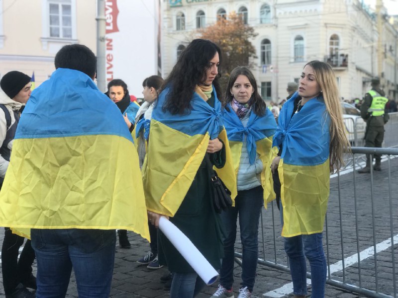 Также к Софийской площади прибыл почти весь трудовой состав строительного магазина "Эпицентр". Сами прибывшие рассказывают, что любят день Покрова и  этот праздник для них, как национальный.