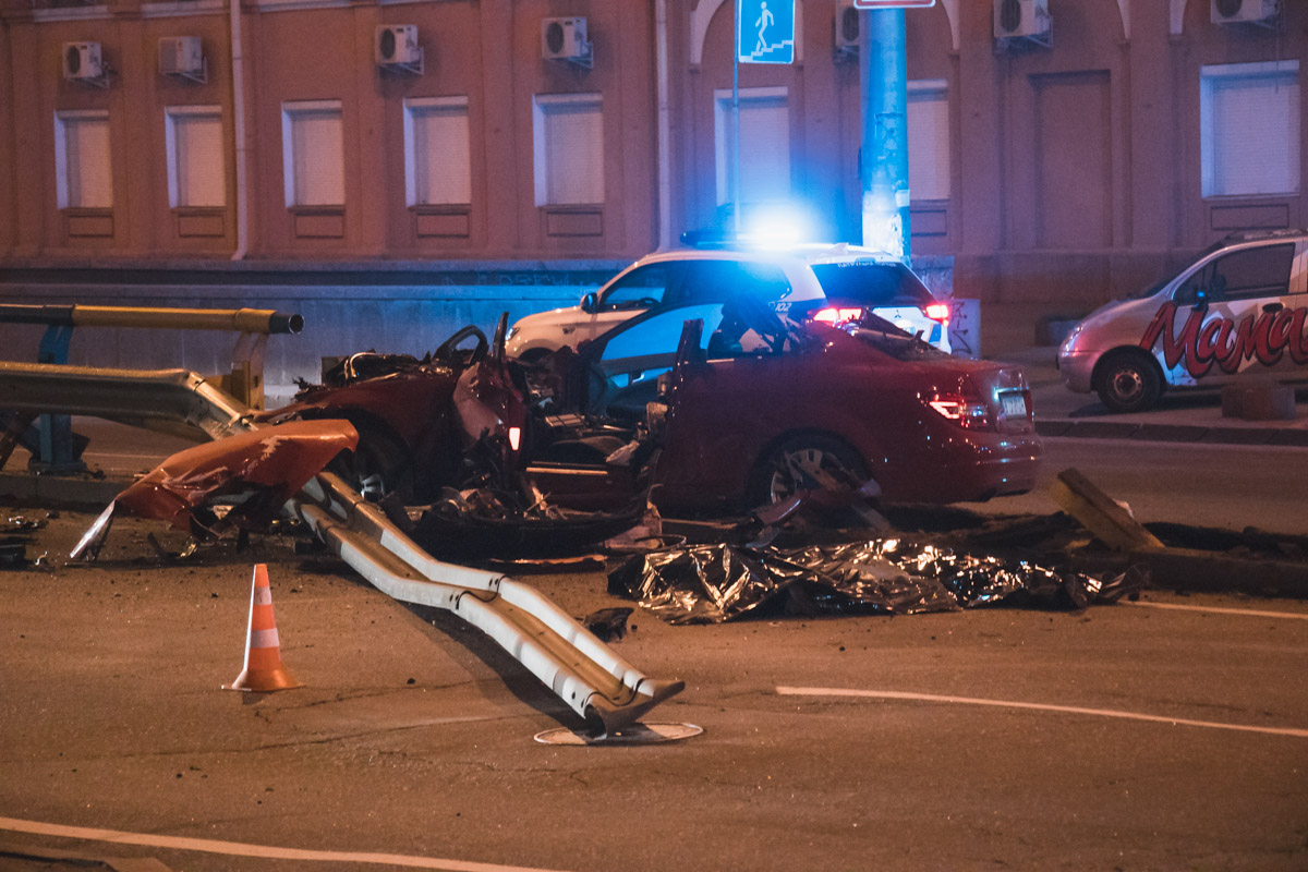 Ночью в Киеве Mercedes влетел в отбойник, двое погибших. Фото и видео