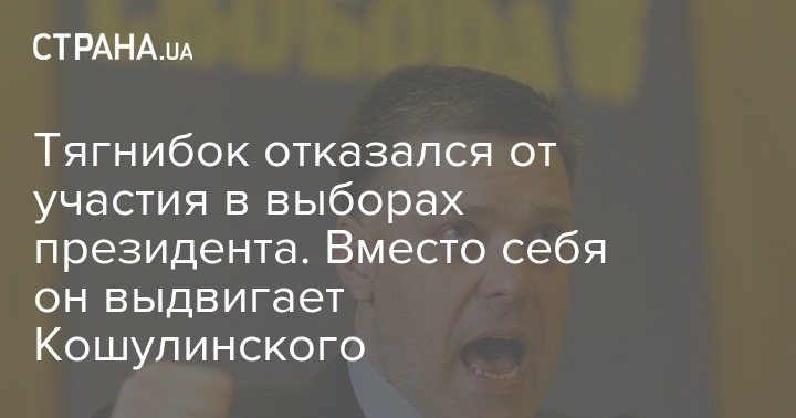 В воскресенье, 14 октября, глава партии ВО "Свобода" Олег Тягнибок на митинге в Киеве заявил, что не будет выдвигать свою кандидатуру на грядущие президентские выборы.