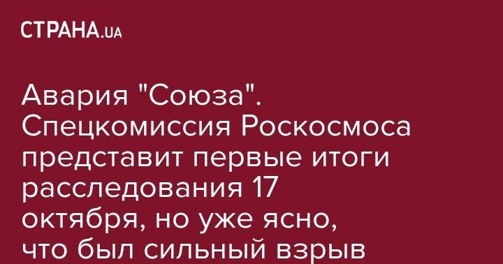 Свои первые официальные выоды о причинах аварии, спецкомиссия представит гендиректору "Роскосмоса" Дмитрию Рогозину 17 октября. Об этом передает "Коммерсант".
