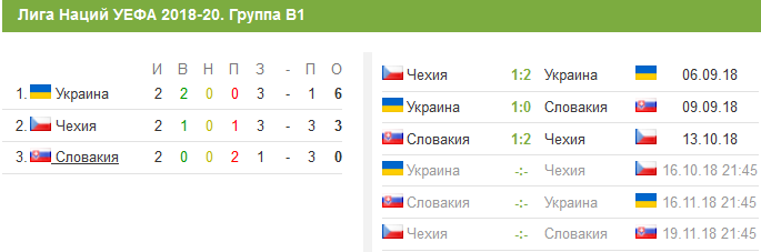 Положение в группе В1 Лиги наций УЕФА на 16 октября и календарь оставшихся матчей