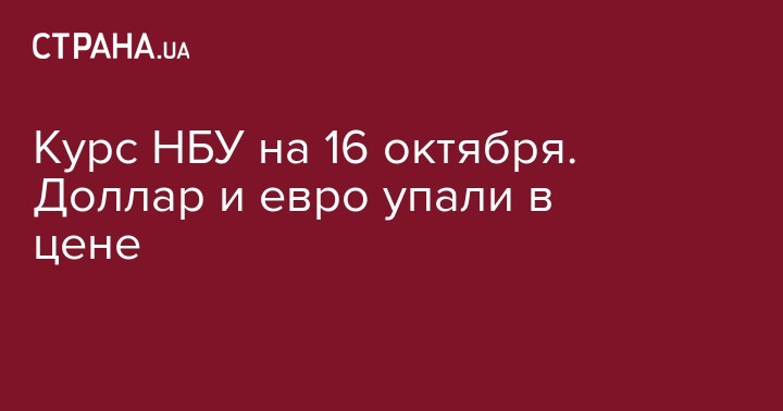 В то же время регулятор понизил и курс евро к гривне - до 32,32 гривень за евро, это на 7 копеек дешевле, чем в пятницу, 12 октября.