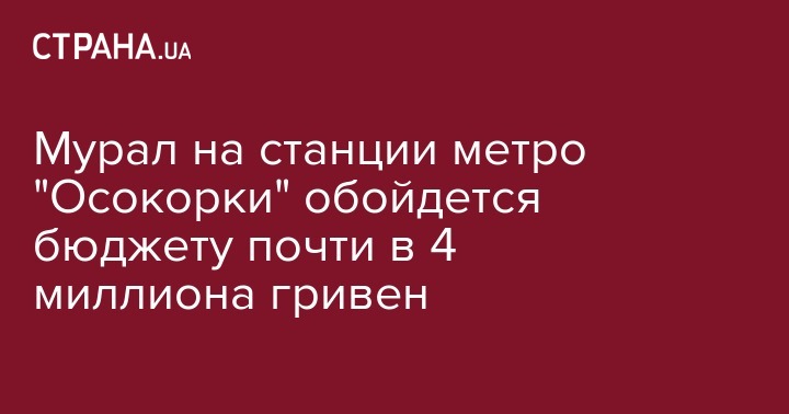 В Киеве на станции метро "Осокорки" появится дорогостоящий мурал, который обойдется городскому бюджету в 3,65 миллиона гривен. Такие данные указывает госпредприятие "Центр защиты информационного пространства Украины", выступающее заказчиком работ.