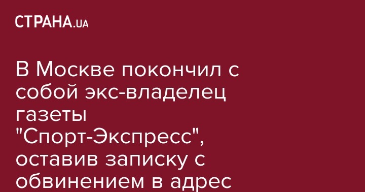 В Москве покончил с собой экс-владелец газеты "Спорт-Экспресс", оставив записку с обвинением в адрес кредитора