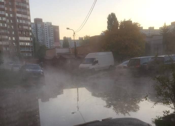 В Голосеевском районе Киева во дворах бьют горячие "фонтаны". Фото