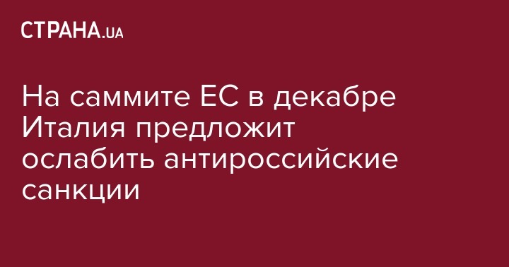 На саммите ЕС в декабре Италия предложит ослабить антироссийские санкции