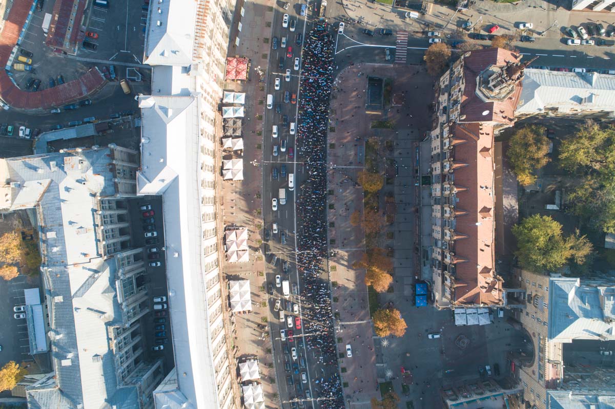 "Информатор" обнародовал фото марша с воздуха, в момент, когда участники акции протеста по Крещатику шли к Кабмину и Верховной Раде.