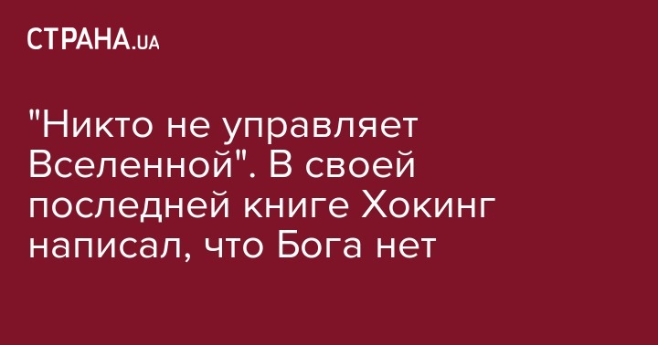 "Никто не управляет Вселенной". В своей последней книге Хокинг написал, что Бога нет