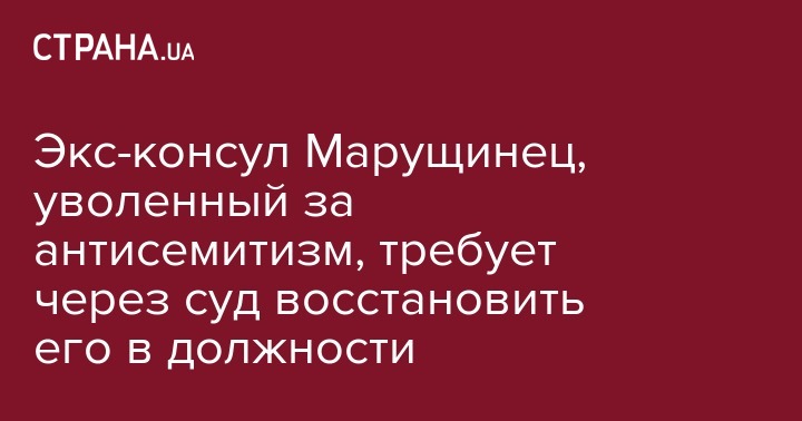 Экс-консул Марущинец, уволенный за антисемитизм, требует через суд восстановить его в должности