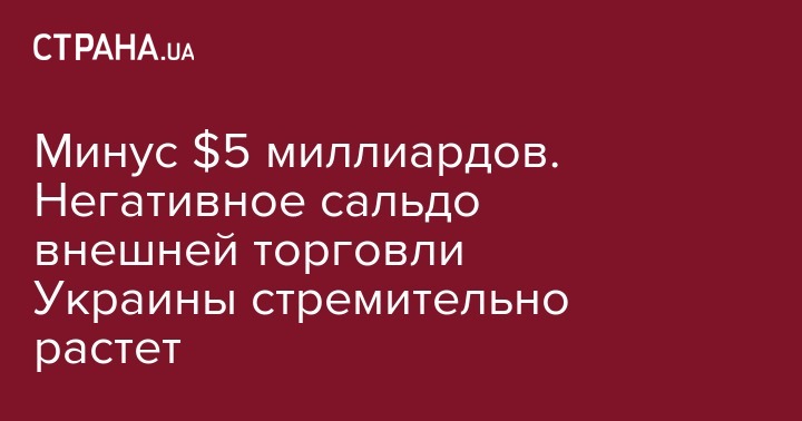 Негативное сальдо внешней торговли Украины в январе-августе 2018 года увеличилось на 45,7% по сравнению с январем-августом 2017 года и составило 5,0041 миллиарда долларов. Об этом со ссылкой на Государственную службу статистики сообщает  "Экономическая правда".