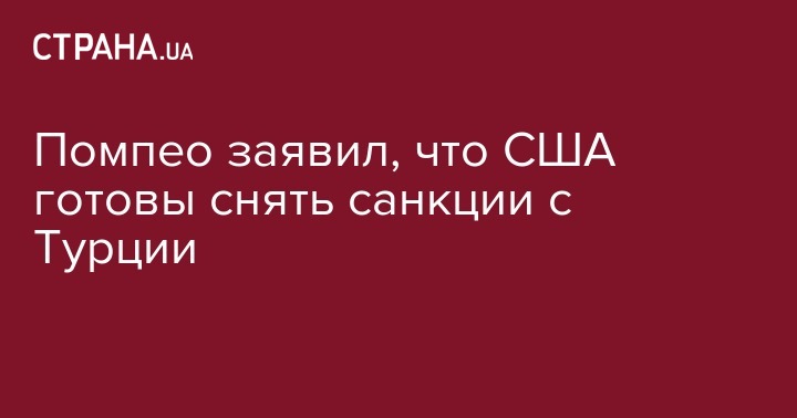 Ряд санкций, введенных США против Турции, могут быть сняты в связи с возвращением пастора Эндрю Брансона домой. Об этом Госсекретарь США Майк Помпео заявил после встречи в Стамбуле с главой МИД Турции Мевлют Чавушоглу, сообщает Bloomberg.