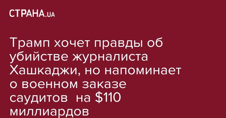 На вопрос о том, намерены ли США дистанцироваться от Саудовской Аравии в свете исчезновения Хашкаджи, Трамп ответил: "Я не хочу этого делать, и, честно говоря, они сделали огромный заказ, на 110 миллиардов долларов".