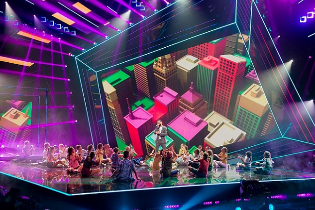 Для сцены также придумали необычное пространственное решение: создается впечатление, что она парит в воздухе, хотя на самом деле весит 10 тонн! Благодаря спецэффектам, за спиной и под ногами артистов будут плыть облака, бушевать море, вырастать крыши небоскребов, летать планеты и распускаться цветы.