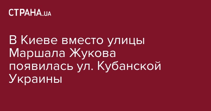 Власти Киева переименовали улицу Маршала Жукова в Деснянском районе столицы на улицу Кубанской Украины. Об этом сообщает пресс-служба Киеврады.