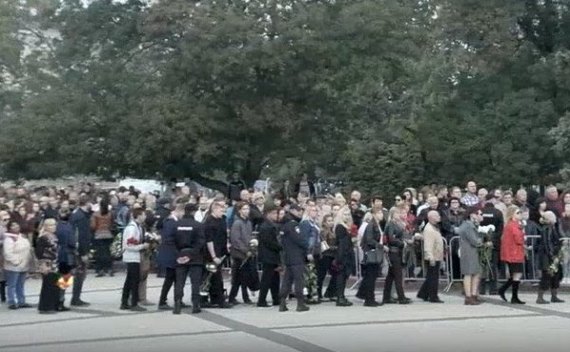 Толпа людей, которые хотят попрощаться с погибшими, идет без перерыва...