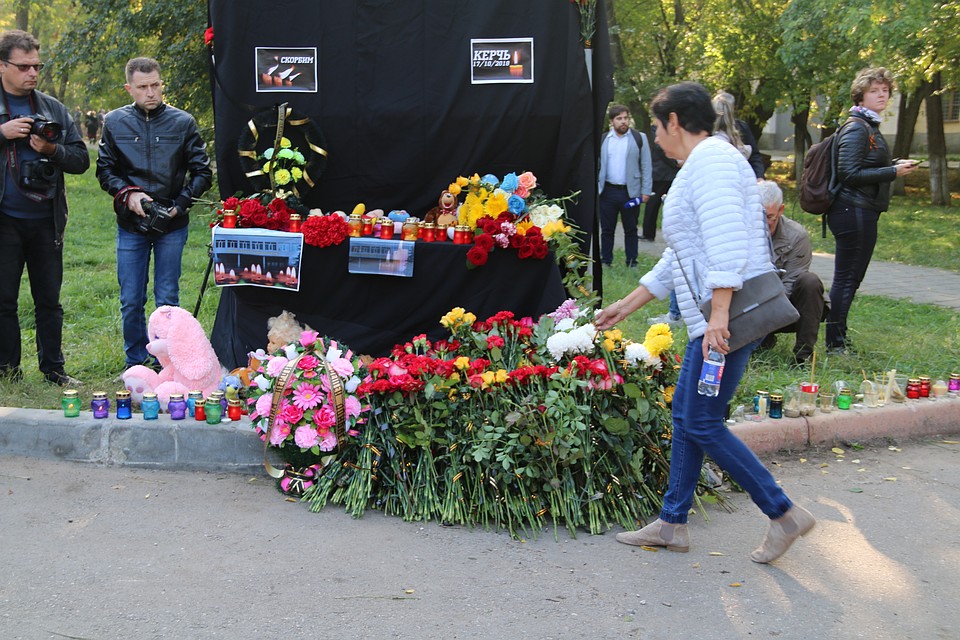 В Керчи 19 октября проходит церемония прощания с жертвами массового убийства в политехническом колледже. С 09:30 у здания учебного заведения началась акция "Зажги свечу памяти". Почтить память родных, друзей и знакомых пришли сотни людей.