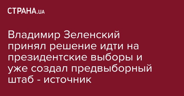Владимир Зеленский принял решение идти на президентские выборы и уже создал предвыборный штаб - источник