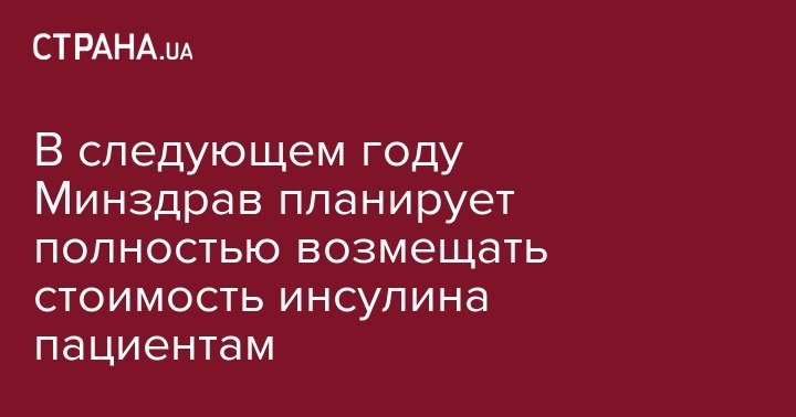 Полное возмещение стоимости препаратов инсулина Минздрав планирует начать в 2019 году. В этом году из госбюджета выделены средства на возмещение 75% инсулина. Об этом сообщила глава министерства Ульяна Супрун на своей странице в Facebook.