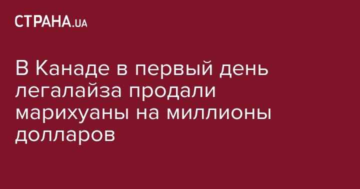 Сообщается, по полученным данным, в первый день старта розничных и онлайн-продаж канадцы купили марихуаны на сумму, превышающую 1,8 млн канадских долларов. Лидерами списка стали Альберта — 730 тысяч канадских долларов (560 тыс долл) и Новая Шотландия — 660 тысяч канадских долларов (505 тыс долл).