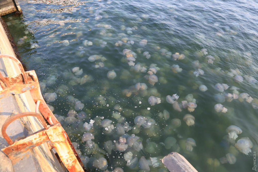 Так, в акватории Одесского порта можно наблюдать огромное количество медуз. В воде их полным полно, разного цвета и размера. Встречаются экземпляры от молочного до синего с красноватым оттенком цвета. Размер некоторых медуз достигает до 30 сантиметров в диаметре.