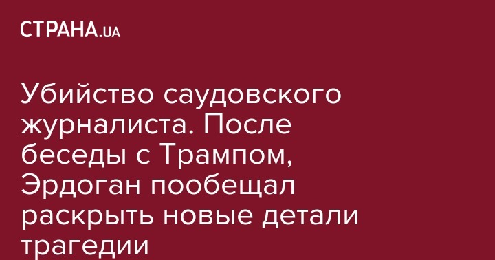 Убийство саудовского журналиста. После беседы с Трампом, Эрдоган пообещал раскрыть новые детали трагедии