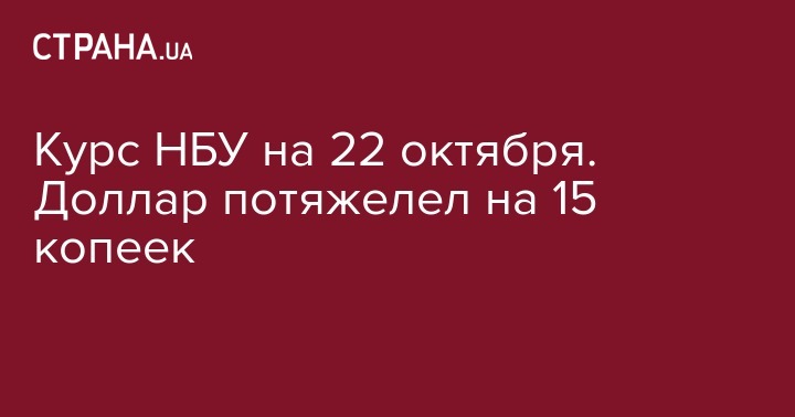 Курс НБУ на 22 октября. Доллар потяжелел на 15 копеек