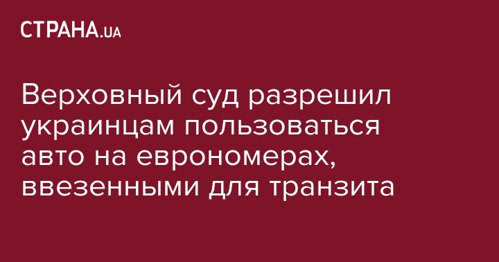 Использование в Украине автомобилей с еврономерами, которые были ввезены в страну с целью транзита через ее таможенную территорию, не может считаться правонарушением. Об этом сообщает пресс-служба Верховного суда.