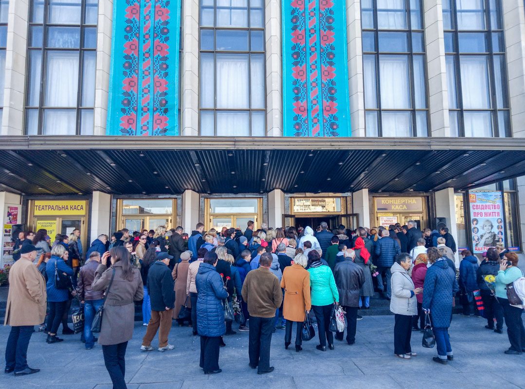 Церемония прощания началась в 10:30 в здании Житомирского академического музыкально-драматического театра имени Кочерги. Катафалк с телом актрисы прибыл на место немного заранее, его сопровождала полиция. Попрощаться с Мариной Поплавской собрались около 500 человек. Среди них есть и совсем молодые люди, и пенсионеры. Они принесли с собой цветы, некоторые из гостей церемонии плачут.
