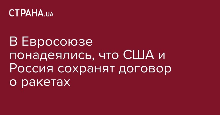 В Евросоюзе выразили надежду, что США и РФ продолжат переговоры и смогут сохранить в силе Договор о ракетах средней и меньшей дальности (ДРСМД). Об этом заявила в понедельник представитель главы европейской дипломатии Майя Косьянчич, пишет "Интерфакс".