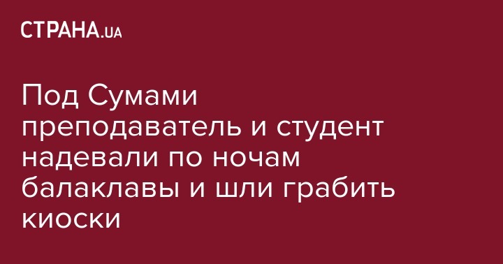 В Сумской области преподаватель колледжа вместе с учеником по ночам совершали кражи. Об этом сообщает пресс-служба Судебной власти Украины.