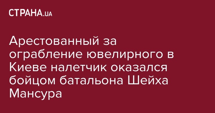 В понедельник, 22 октября, в Киеве задержан боец батальона имени Шейха Мансура ингуш Салман Сайнароев. Правоохранители считают, что он во время нападения на ювелирный магазин в столице убил из автомата охранника.
