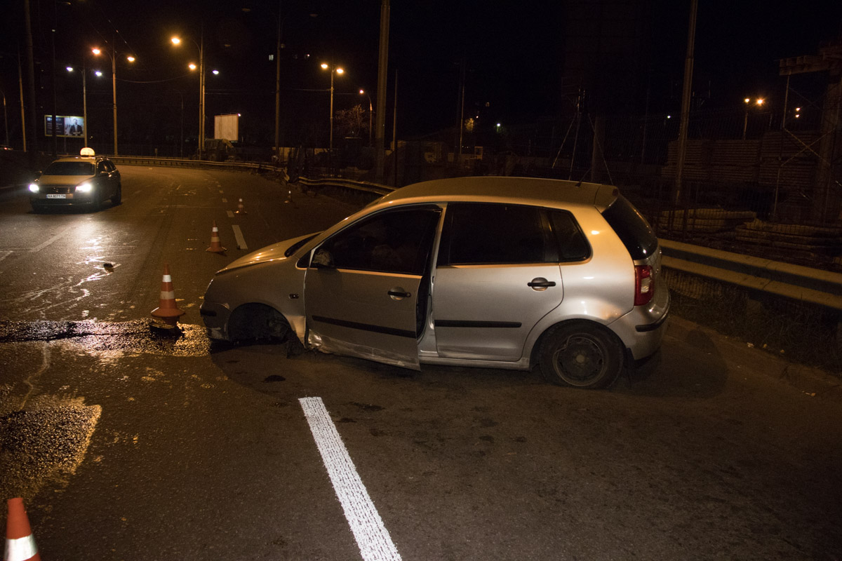 Инцидент произошел около 00:30. Водитель автомобиля Volkswagen Polo, который ехал по проспекту в сторону улицы Зодчих, не справился с управлением и влетел в отбойник. В аварии никто не пострадал, у авто отлетело переднее колесо и вытекло масло.