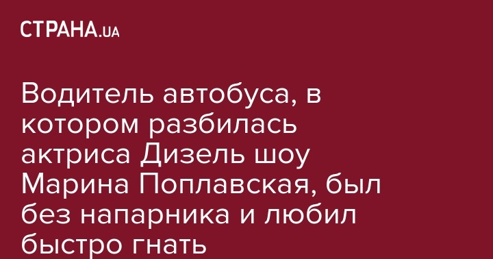 Полиция Киевской области взяла под стражу водителя автобуса "Неоплан", который был за рулем, когда машина попала в ДТП, в котором разбилась известная актриса"Дизель Шоу" Марина Поплавская. Об этом сообщает Obozrevatel.
