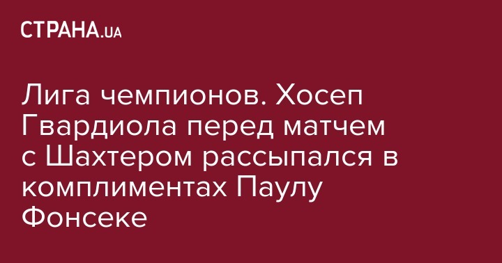 На предматчевой пресс-конференции главный тренер "горожан" Пеп Гвардиола рассказал не только о поединке и проблемах с составом, но и поделился мнением о тренере Шахтера Паулу Фонсеке.