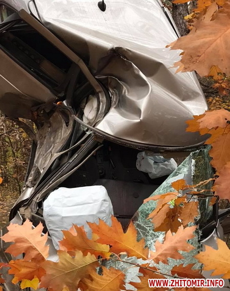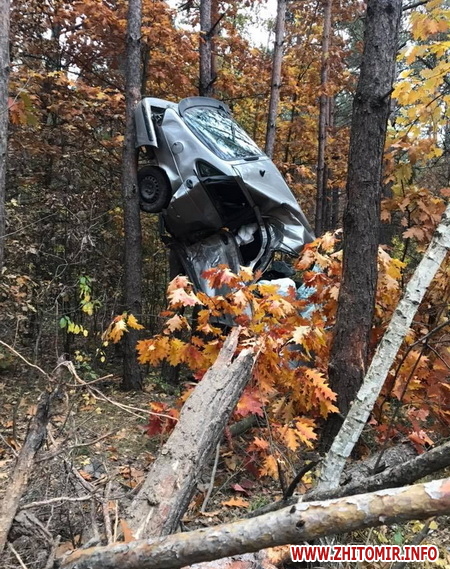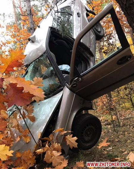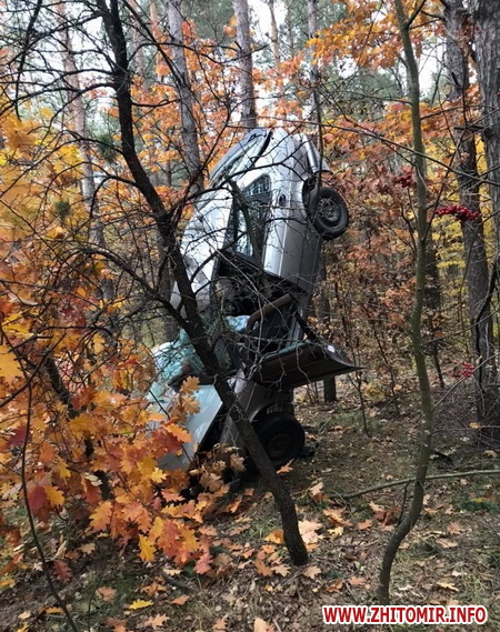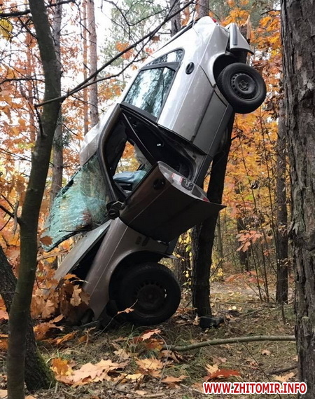 По информации правоохранителей, авария произошла 20 октября около 12:00 недалеко от Корбутовского кладбища Житомира. Водитель на легковом автомобиле ехал по Западному шоссе. Он не справился с управлением и выехал в кювет, где и "припарковался" прямо на дерево, при этом - в вертикальном положении.