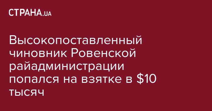 Правоохранители подозревают первого заместителя председателя Ровенской районной государственной администрации в получении взятки в размере 10 тысяч долларов. Об этом говорится в сообщении пресс-службы Генеральной прокуратуры.