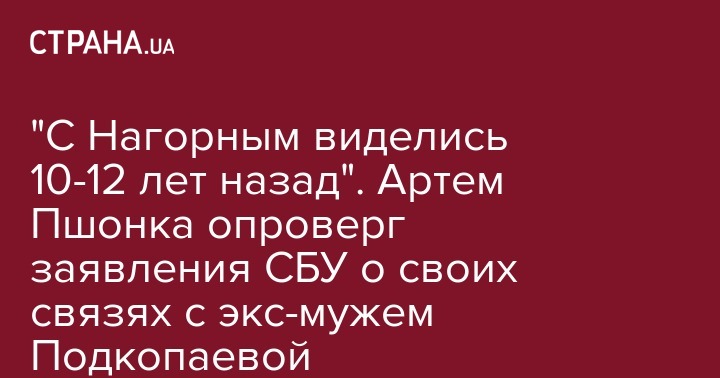 Артем Пшонка в ответ на это заявил "Стране", что в последний раз видел Нагорного, когда он был еще мужем Лилии Подкопаевой. А информацию шефа киевской СБУ назвал "ложью и клеветой".