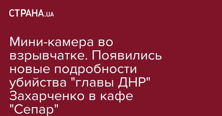 Глава так называемой "ДНР" Александр Захарченко был убит 31 августа с помощью бомбы, дополнительно оборудованной мини-камерой. Кроме того, его убийство было тщательно подготовлено заранее, так как Захарченко сначала вообще не собирался посещать кафе "Сепар", где произошел подрыв. Об этом сообщает Telegram-канал WG.
