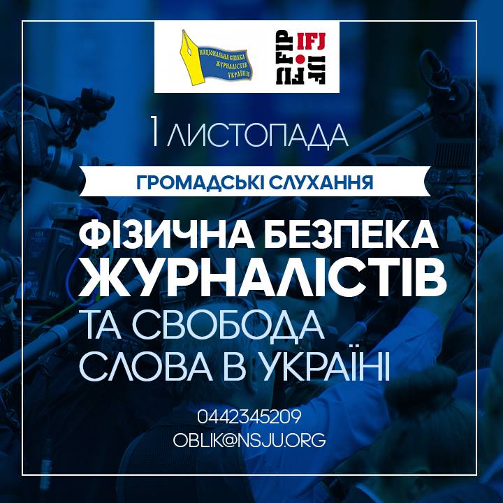 1 ноября в Киеве пройдут общественные слушания, посвященные безопасности журналистов. Об этом сообщил глава Национального союза журналистов Украины Сергей Томиленко на своей странице в Facebook.